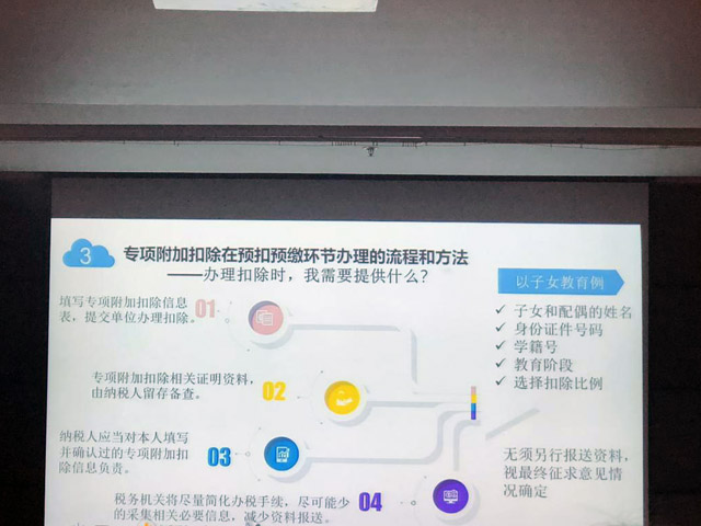 12月26日下午,華信公司財務(wù)部多名職工參加了個人所得稅改革政策及系統(tǒng)操作培訓(xùn),培訓(xùn)由泰州市稅務(wù)局組織,培訓(xùn)地點在泰州市稅務(wù)局北樓10樓(海陵區(qū)青年南路68號)。本次培訓(xùn)主要介紹了個稅政策的變動情況,培訓(xùn)會主要介紹了四項內(nèi)容:1、提高工資薪金所得減除費用標(biāo)準(zhǔn);2、調(diào)整工薪所得稅率結(jié)構(gòu);3、調(diào)整了個體工商戶生產(chǎn)經(jīng)營所得和承包承租經(jīng)營所得的稅率級距;4、延長申報繳納稅款期限。 本次個人所得稅政策修改的一大亮點是對現(xiàn)行工薪所得稅率表進(jìn)行了調(diào)整和優(yōu)化,減輕中低收入者稅負(fù),適當(dāng)提高高收入者稅負(fù),將最低一檔稅率由5%降為3%,適當(dāng)擴(kuò)大了3%和10%兩個低檔稅率的適用范圍,進(jìn)一步減輕中低工薪所得納稅人的稅收負(fù)擔(dān);同時,還擴(kuò)大了最高稅率45%的覆蓋范圍,將現(xiàn)行適用40%稅率的應(yīng)納稅所得額并入45%稅率,加大了對高收入者的調(diào)節(jié)力度。
