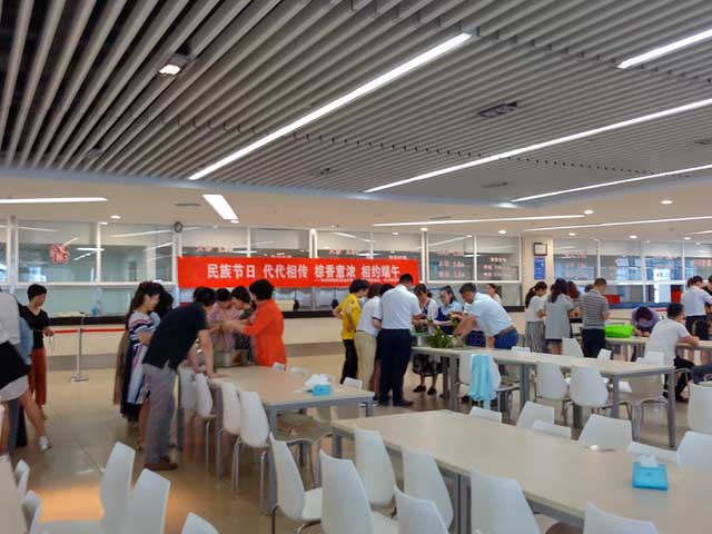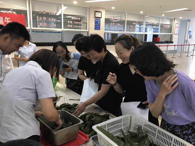 為豐富公司職工業(yè)余文化生活,推廣民族優(yōu)秀傳統(tǒng)文化,6月15日下午,在中國(guó)傳統(tǒng)“端午”佳節(jié)來(lái)臨之際,華信公司工會(huì)委員會(huì)與婦女聯(lián)合會(huì)組織開(kāi)展“民族節(jié)日,代代相傳 ,粽香意濃,相約端午”包粽子比賽活動(dòng),活動(dòng)地點(diǎn)設(shè)在商務(wù)一號(hào)樓二樓食堂,全公司約60余名職工參加了活動(dòng)。 活動(dòng)前,籌備小組就活動(dòng)準(zhǔn)備工作進(jìn)行了討論,為激發(fā)員工的參與熱情,活動(dòng)確定了以分組比賽為主的活動(dòng)形式,并設(shè)置了豐富的獎(jiǎng)品以提高競(jìng)爭(zhēng)積極性??紤]到新手參賽者較多,小組成員在賽前向參賽員工提供了包粽子教學(xué)視頻,并安排專(zhuān)業(yè)的食堂師傅和物業(yè)工作人員進(jìn)行現(xiàn)場(chǎng)教學(xué)指導(dǎo)。 在活動(dòng)現(xiàn)場(chǎng),整齊地?cái)[放有粽葉、糯米、線繩、紅豆、蜜棗、花生等制作材料,種類(lèi)豐富?,F(xiàn)場(chǎng)參賽者摩拳擦掌,準(zhǔn)備大顯身手,旁邊的觀賽人員也躍躍欲試,期待著臨場(chǎng)觀摩學(xué)習(xí)。隨著活動(dòng)組織人員的一聲令下,參賽者迅速地包起了粽子,有的參賽者技術(shù)水平過(guò)硬,迅速地將餡填入糯米,裹好粽葉并纏緊線繩,平均一分鐘就可做出一個(gè);有的參賽者新手上路,現(xiàn)學(xué)現(xiàn)用,包不好粽葉,不得不請(qǐng)求現(xiàn)場(chǎng)指導(dǎo),現(xiàn)場(chǎng)歡聲笑語(yǔ),十分熱鬧。比賽最終產(chǎn)生了一等獎(jiǎng)1組,二等獎(jiǎng)3組,其余組為三等獎(jiǎng)。