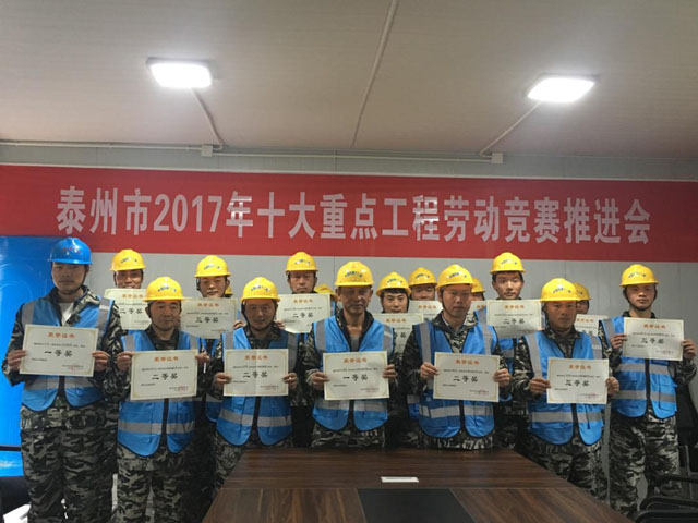 近日,華信公司六期廠房項(xiàng)目部按照“五比五賽”的總體要求,開展了工人勞動(dòng)技能競賽,即“鋼筋綁扎能手賽”、標(biāo)準(zhǔn)磚砌筑大賽”、加氣塊砌筑大賽”、眼明手快賽”及“塔司高手賽”五項(xiàng)大賽,11月17日上午,華信公司副總經(jīng)理梁金平為此次參加比賽的獲獎(jiǎng)?wù)哳C發(fā)了榮譽(yù)證書。此次比賽旨在全面貫徹泰勞競辦(2017)1號(hào)文《關(guān)于申報(bào)2017年全市重點(diǎn)工程勞動(dòng)競賽項(xiàng)目職工職業(yè)技能競賽工種、職工技術(shù)創(chuàng)新競賽項(xiàng)目的通知》和泰勞競辦(2017)3號(hào)文《關(guān)于在全市十大重點(diǎn)工程項(xiàng)目建設(shè)中開展勞動(dòng)競賽活動(dòng)的通知》精神。