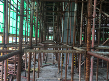 施工現(xiàn)場的輪扣式腳手架,比傳統(tǒng)的扣件腳手架具有可靠的雙向自鎖能力,經(jīng)濟(jì)性和綜合性好,安裝更方便、更快捷,承載力大及具有使用的多功能性。